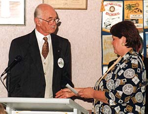District Governor: Pat McMonagle President: Barry Swain Theme: Honor Rotary with Faith & Enthusiasm Office Bearers 1990-91 President Barry Swain Club Service Vocational Service International Service Community Service Youth Service Chairman Darryl Hood Once again Changeover is upon us and I ask myself where did the year go? It seems no time at all since Gil handed over to me last June. The ensuring year has not been as easy for the Club as it might have been - the country's economic woes have hit us, as they have many organisations and individuals. This I am sure has affected our potential for the recruiting of new members. Nevertheless, we will have inducted six new members and have welcomed during the year Doug miles, Les McGavin, Alan Mumford, Tony Nicol together with their Rotaryannes, while tonight I will induct Jim Nolan and Darrell Slater. On the down side though, we have lost six former members. Our bus shelter project has been affected similarly, with difficulty being experienced in leasing advertising space, which has adversely affected our income for the year. Bowelscan also attracted far fewer participants than it did last year and although a most worthy community service did not swell our community funds to any great extent. Our involvement with Woodridge and Shailer Park State High Schools continued during the year. It gave me great pleasure to attend Woodridge Schools Speech Night where I presented their Citizenship Awards and received from the school an award to our club for assistance to them and their Peer Group Support Scheme. Subsequently I was asked to present certificates to those seniors who had participated in the scheme. At Shailer Park three of us conducted mock job interviews for Year Twelve students at the end of last year and this year I attended school assembly to present a copy of the Australian Medical Research Fund art book for the library. Our meetings during the year have been relaxed and relatively informal, engendering a true fellowship, which I think has been felt and appreciated by all members. I think the altered format of our club assemblies has been a success with the whole club having more opportunity to discuss aspects of any of the four avenues of service. I would, however, have liked to have seen more general participation in these social functions organised outside our normal meetings. My thanks, though, to those fellows and their Annes, who accompanied Joy and I to various Rotary functions outside the club-District Governor's changeover, Logan Sunrise charter night, District Conference and the GSE dinner to mention a few. Our Rotary Foundation Scholar, Steve Brown and Leith were farewelled in September and have kept in touch with us from London since then. Steve has been an excellent ambassador from the club, the District and indeed, Australia. It was good to welcome back to a club meeting Haruko Ishikawa who was our second exchange student. I hope that the Club will be in a position to rejoin the Youth Exchange Programme in the not too distant future and so host and send away exchange students. When making my thanks for the year I would like to thank particularly those members of the Club Service Committee who have ensured that our weekly meetings have run so smoothly during the year - Sergeant Peter, Bulletin Editor Darryl and printer Chris, Registrars Les, Dave and Ian and Programme Director, Chris. My grateful thanks of course to my board - Directors Ray, Randal, Martin and Dave, Secretary Brian, Treasurer Noel, Vice President Ian and Past President Gil who have given me such support during the year. Special thanks too, to our Youth Services Chairman, Darryl who has had a busy year with RYLA and the National Science Summer School - once again we think we are putting forward an excellent candidate for District's consideration. My special thanks to Joy who has supported me so well during the year and to the other Rotaryannes who are always so willing to be called upon for assistance, be it for organising a function, helping with Bowelscan, joining us on a door knock or simply attending our Ladies nights, where they invariably add lustre to the proceedings. Finally, my best wishes to Martin for the coming year to whom I will give my full support as Gil has supported me during the past year. Barry Swain Club Service Report 1990-91 From a Club Service point of view 1990/91 has been a year of non events. The year started off well with a change of seating format at meetings and as a result a lot more fellowship was evident. In November we had our first "solo" Melbourne Cup night for many years. That is, we did not combine with another club for the night. The evening was held at Ray and Helen Carter's house. It was a successful and entertaining evening for all. Jacki Lunn still can't find her keys and Joy Swain is still wondering how Barry managed to bring her favourite wine glass home from a Rotary meeting several weeks after Melbourne Cup. From here the year was non event. A ten year anniversary dinner outing was required. This was tentatively booked for a bus trip to the Miami Festhaus but was "killed" at board level. At the January board meeting it was decided to organise a bus trip through the "craft" areas of Maleny, Flaxton, Montville etc., coming back through Toowoomba and Kilarney area. Originally over half the club said they thought it was a good idea and that they and their spouse would be coming. The date was set almost three months in advance for the 4-5th May. The bus was booked as was accommodation in Toowoomba and Weis' Restaurant. Much time was spent in planning distances etc. to organise morning and afternoon tea stops. A week before we were due to go we could not get enough takes to even fill a mini bus. We had to cancel. Following this it was difficult to get anybody motivated to do anything more on the club service front. Yours in Rotary, Vocational Service Report 1990-91 The 1990/91 year was great fun and thanks are express