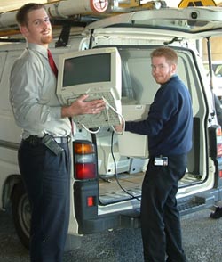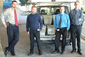 Brad Jones and Matthew De Carteret loading computer monitors