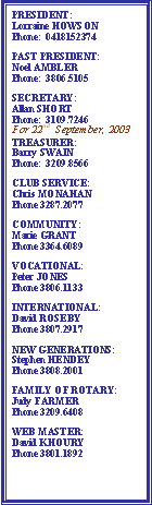 • District 9630 Conference:  25 – 28 March 2004 Royal Pines Resort